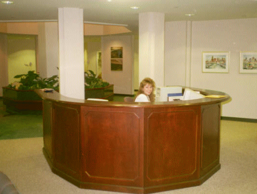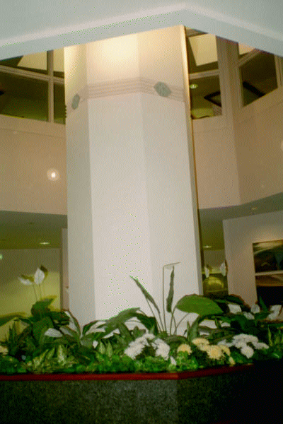 at the original central column behind the receptionist's desk. This atrium